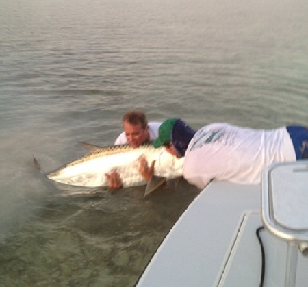 Caught this baby last Friday night in the Florida Keys off of Islamorada. We estimate 115 to 120 lbs., and in fact it was the smallest of the three that we caught that night.