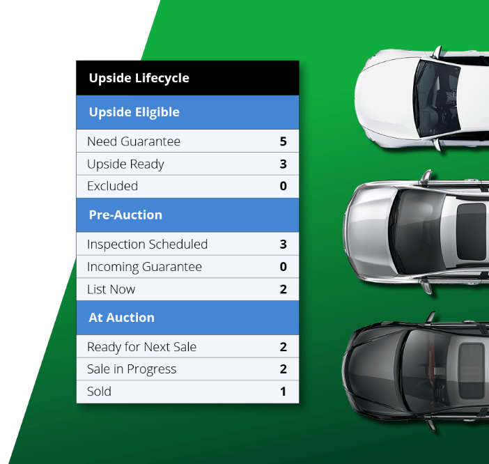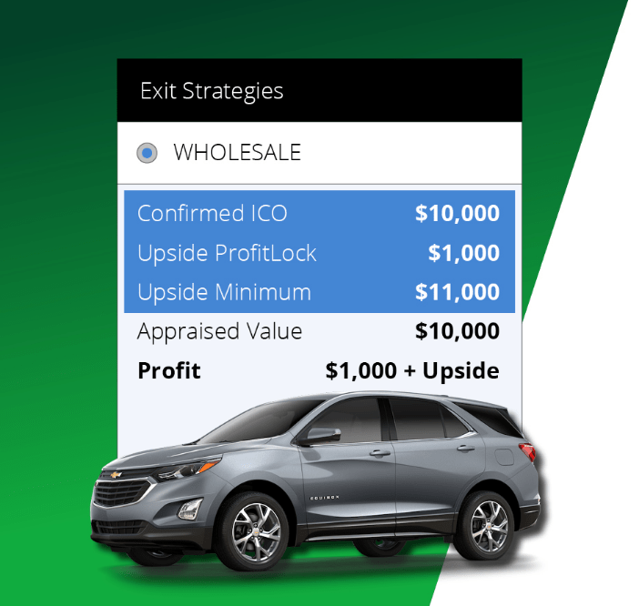 Upside redefines the risk/reward equation for you as a wholesale seller. You can help your car dealership maximize your returns while removing any risk of loss.