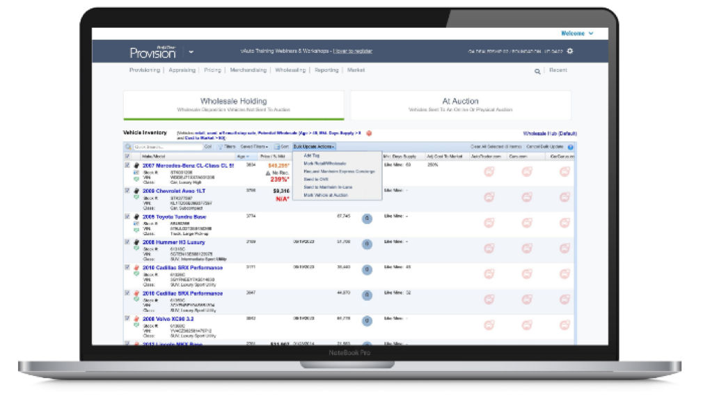 In today’s evolving marketplace, history and book values alone are no longer the best way to measure a new and used car’s profit potential. Through vAuto’s live market view, you get real-time insights from an extensive list of data partners –including Autotrader and Manheim, the nation’s premier retail and wholesale marketplaces.