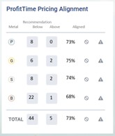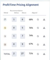 gunning for gross profit, and likely doesn’t mind less volume to achieve it. You can see the dealer’s preference in the number of vehicles priced “above” ProfitTime GPS recommendations across every precious metal category.