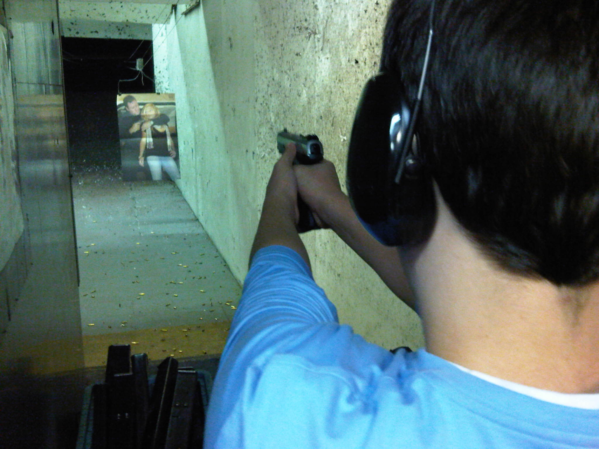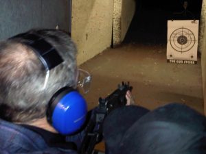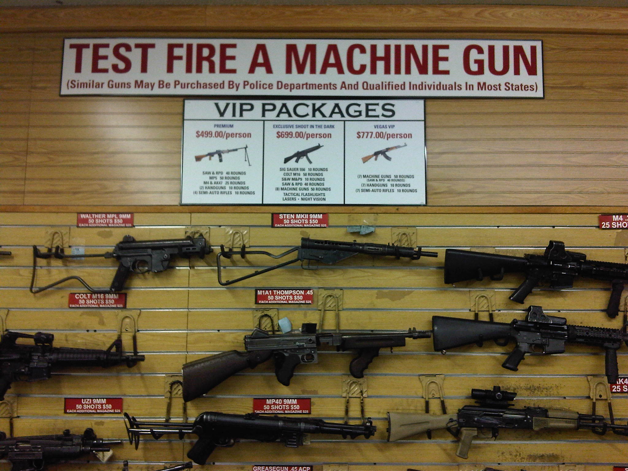 hour wait to fire automatic weapons at The Gun Store. Upon arrival, Steve’s intuition was confirmed, and we walked right in. Also upon arrival we learned that there were restrictions about who can shoot automatic weapons in the State of Nevada. First, we learned that there is a minimum age requirement. You must be over 8. We also learned that being sighted is not a requirement. Clear of these restrictions or lack thereof, we spent the next 2+ hours blowing the brains out of imaginary terrorists, freeing hostages, and taking out enemy snipers. By the time we were done approximately 2.5 hours later, we reeked of